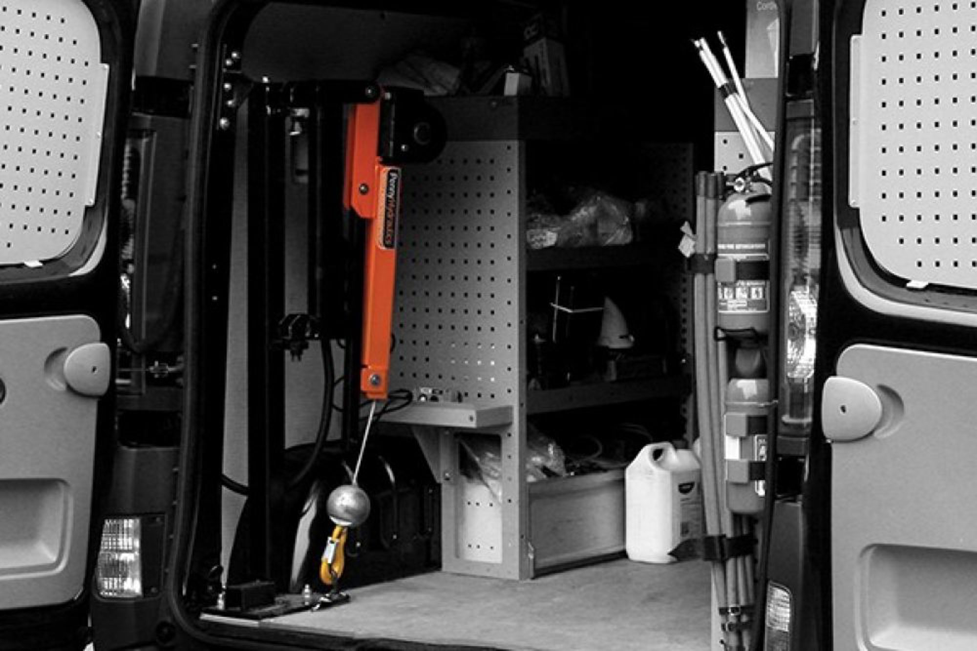 Please note that nearside and offside fittings require a different crane, pillar and fitting kit. It is not always possible to raise the crane boom to its highest position inside a van.