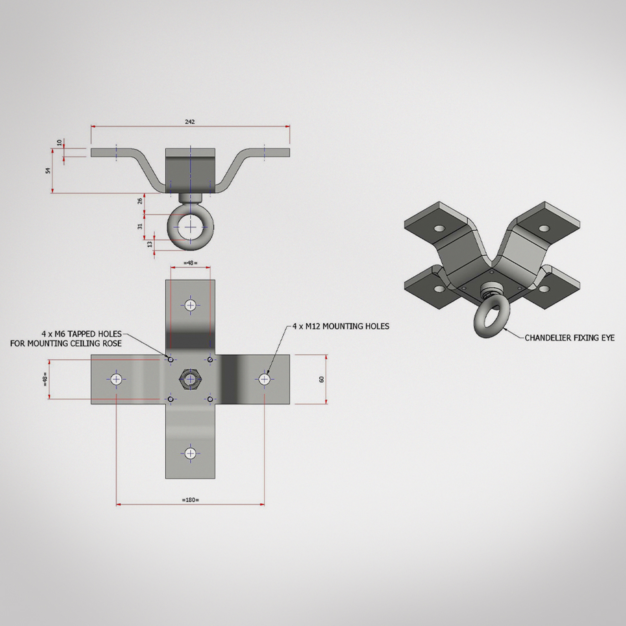 A range of tested hanging brackets available in four loading options, up to 1000kg. Commonly used to suspend chandeliers, artwork, signage, and climate control equipment. Heavy duty tested hanging brackets from Penny Engineering are all individually proof load tested and marked with the rated load capacity.